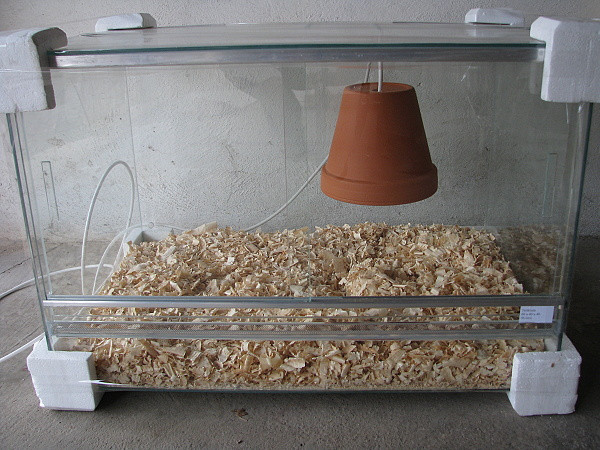 elektro (objímka, kabel, vidlice, žárovka), kryt žárovky, podestýlka hobliny